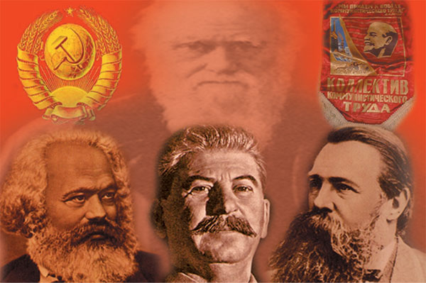 Təkamülçülərin bu metodunun bir bənzəri Stalin dövründə SSRİ-də tətbiq edilmişdi. O dövrdə Sovet İttifaqının rəsmi ideologiyası olan kommunizm dialektik materializm kimi tanınan fəlsəfəni bütün elmlərin əsası hesab edirdi. Bunun bir nəticəsi kimi Stalin bütün elmi fəaliyyətlərin dialektik materializmə uyğunlaşdırılmasını əmr etmişdi. Beləliklə, SSRİ-də yazılan bütün biologiya, fizika, kimya, tarix, siyasət, hətta incəsənət kitablarının əvvəlinə bu elmlərin dialektik materializmə, Marksın, Engelsin, Leninin fikirlərinə əsaslandığına dair giriş bölmələri əlavə edilirdi.